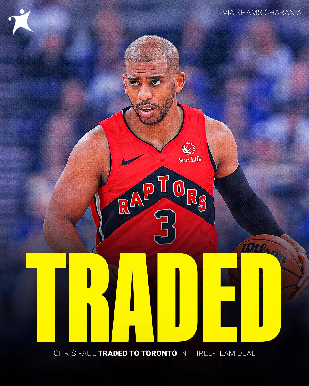 02月05日讯 据ESPN名记Shams报道,数位消息人士透露,快船、篮网和猛龙已达成一项三队交易,将克里斯·保罗交易到猛龙,而阿巴基、猛龙2032年次轮签和部分现金(来自快船,350万美元)则将送去篮网。